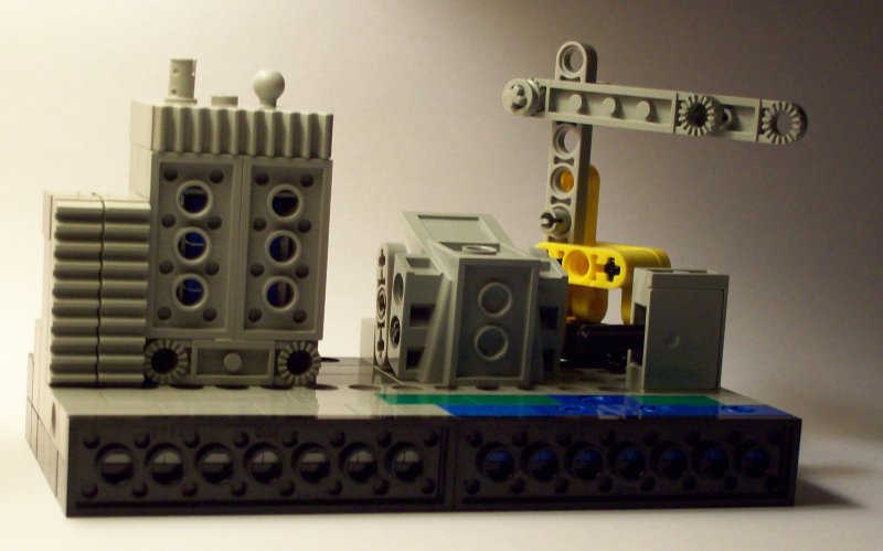 Buildings are pretty easy. I decided to try and use the seat piece as a building front, I think it worked out OK. The mounting on the back was a bit fiddly, and I didn't have room to complete the back of the building using just technic.